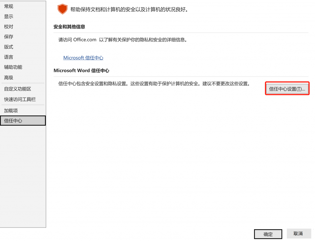 7、运行后,没有生效,可能原因如下:(1)本地文件夹的路径没填对,我自己第一次运行的时候,少了最后面的“\”(2)word中需要启动宏,操作如下:“文件->开始->选项->信任中心->信任中心设置”