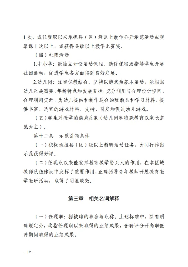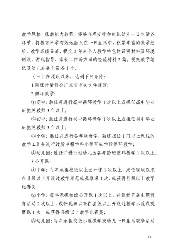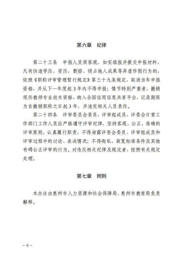 值得关注的是,根据乡村学校教师职业特点,惠州把教好书、育好人作为评审的核心内容。评审突出乡村学校教师师德表现,注重教学工作实际。其中“资历年限条件”提到,申报人在申报评审年度(年限计算截至当年度12月31日)须已在农村中小学校教学一线累计工作满30年,且现仍在一线从事教学工作,受聘一级教师岗位满10年。评价标准对农村学校教师的荣誉、课题、论文不作任何硬性要求,符合条件即可申报。