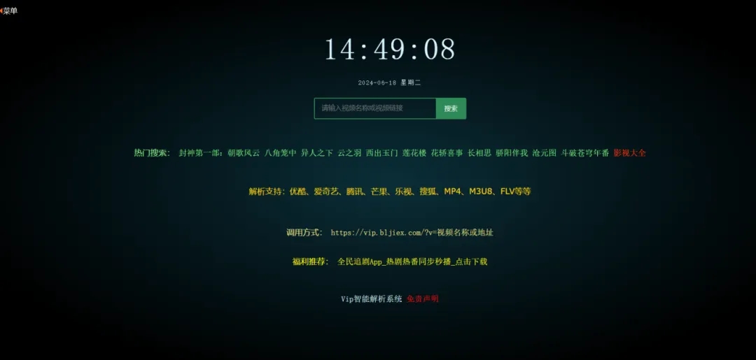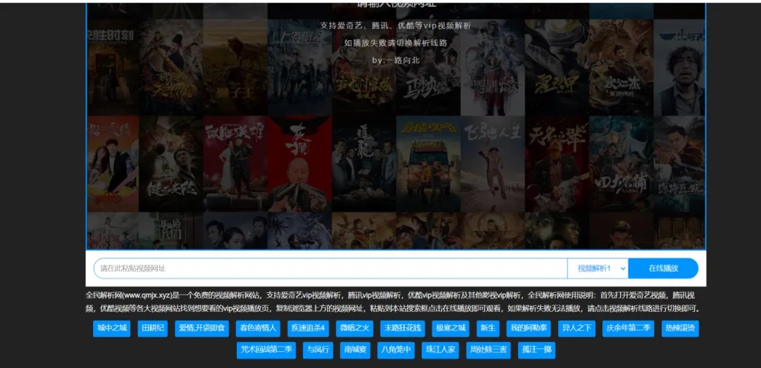 一个VIP视频在线解析下载网站支持国内优酷vip解析、爱奇艺vip解析、腾讯vip解析、乐视vip解析、芒果vip解析支持多路解析功能,可以自己选择最快的线路