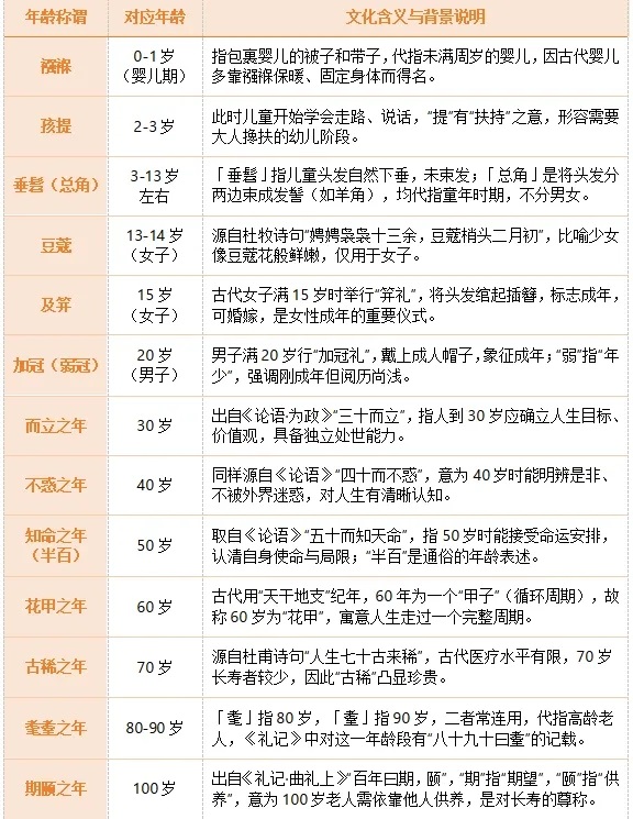 花甲之年、古稀之年、耄耋之年、期颐之年