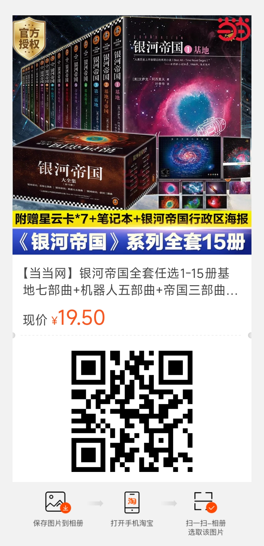 《阿西莫夫短篇小说集》、《你知道吗–现代科学中的100个问题》、《奇妙的航程》、《神们自己》、《复仇女神》、《日暮》、《基地与地球》、《基地边缘》、《第二基地》、《基地与帝国-骡》、《基地与帝国》、《基地》、《迈向基地》、《基地前奏》、《苍穹微石》、《繁星若尘》、《星空暗流》、《机器人与银河帝国》、《曙光中的机器人》、《银河帝国10:裸阳》、《我,机器人》