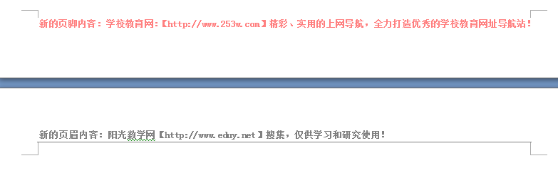 .Range.Text = "新的页眉内容:阳光数学网【http://www.eduy.net】搜集,仅供学习和研究使用!"