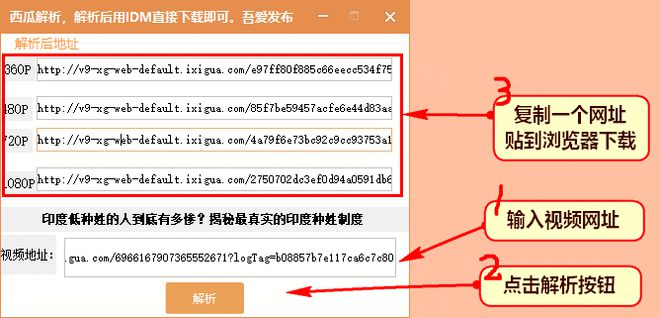 这个解析工具,和方法二的网站差不多,可以解析出三种画质,稳定性好很多,最起码能保证软件一打就开。