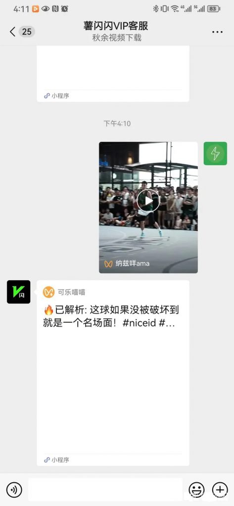 2.找到下载工具后,我们把我们需要下载的视频号的视频转发给这个下载工具,等待一秒钟后,工具就会自动发送一个视频下载通道。