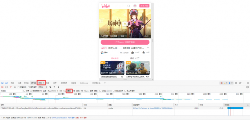 3.依次点击【网络】-【媒体】,进入网页缓存文件查看窗口;