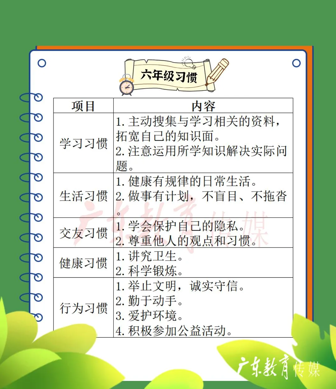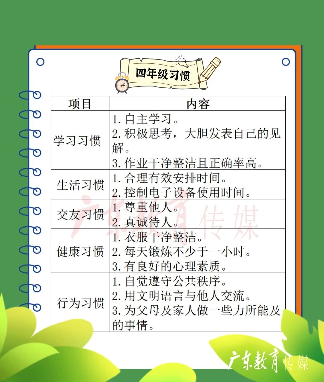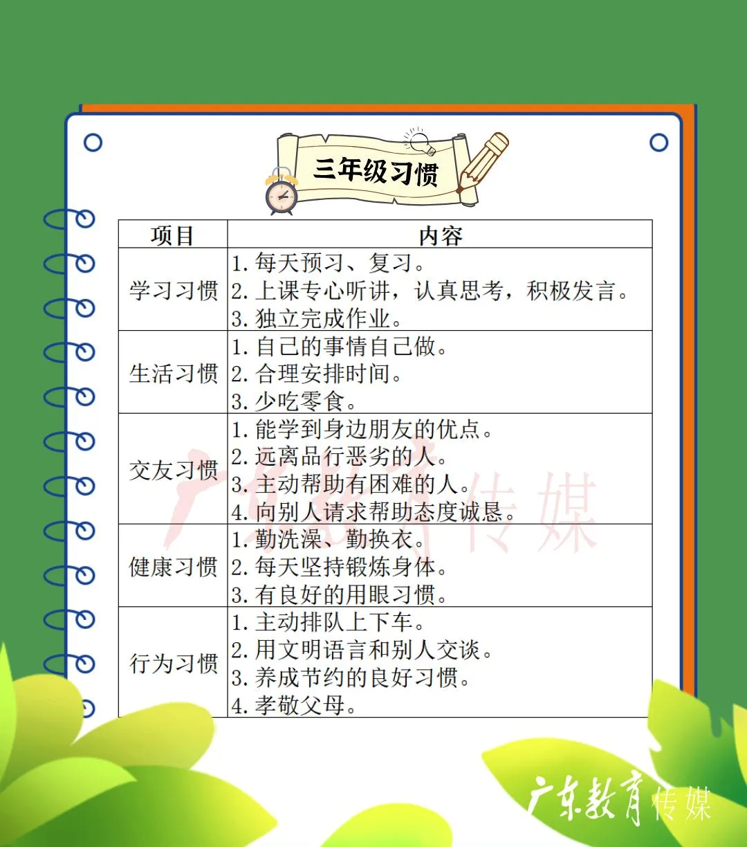 小学生好习惯培养时间表