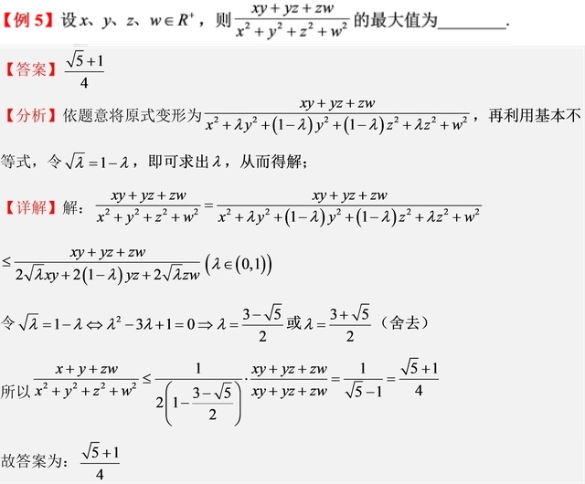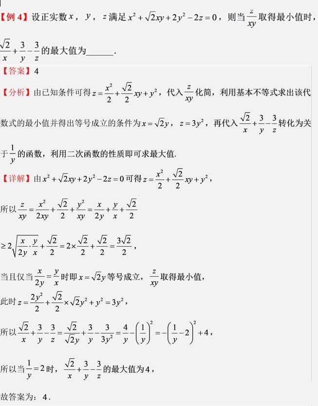 总结:对于换元法或者利用消元法来构造基本不等式的题型属于较难的题型,难度较大,尤其是换元法,往往同学们不知道从何入手,涉及到多变量的不等式。