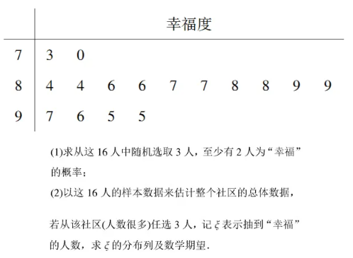 例1.(2016·漯河模拟)寒假期间,我市某校学生会组织部分同学,用“10分制”随机调查“阳光花园”社区人们的幸福度.现从调查人群中随机抽取16名,如图所示的茎叶图记录了他们的幸福度分数(以小数点前的一位数字为茎,小数点后的一位数字为叶),若幸福度分数不低于8.5分,则称该人的幸福度为“幸福”.
