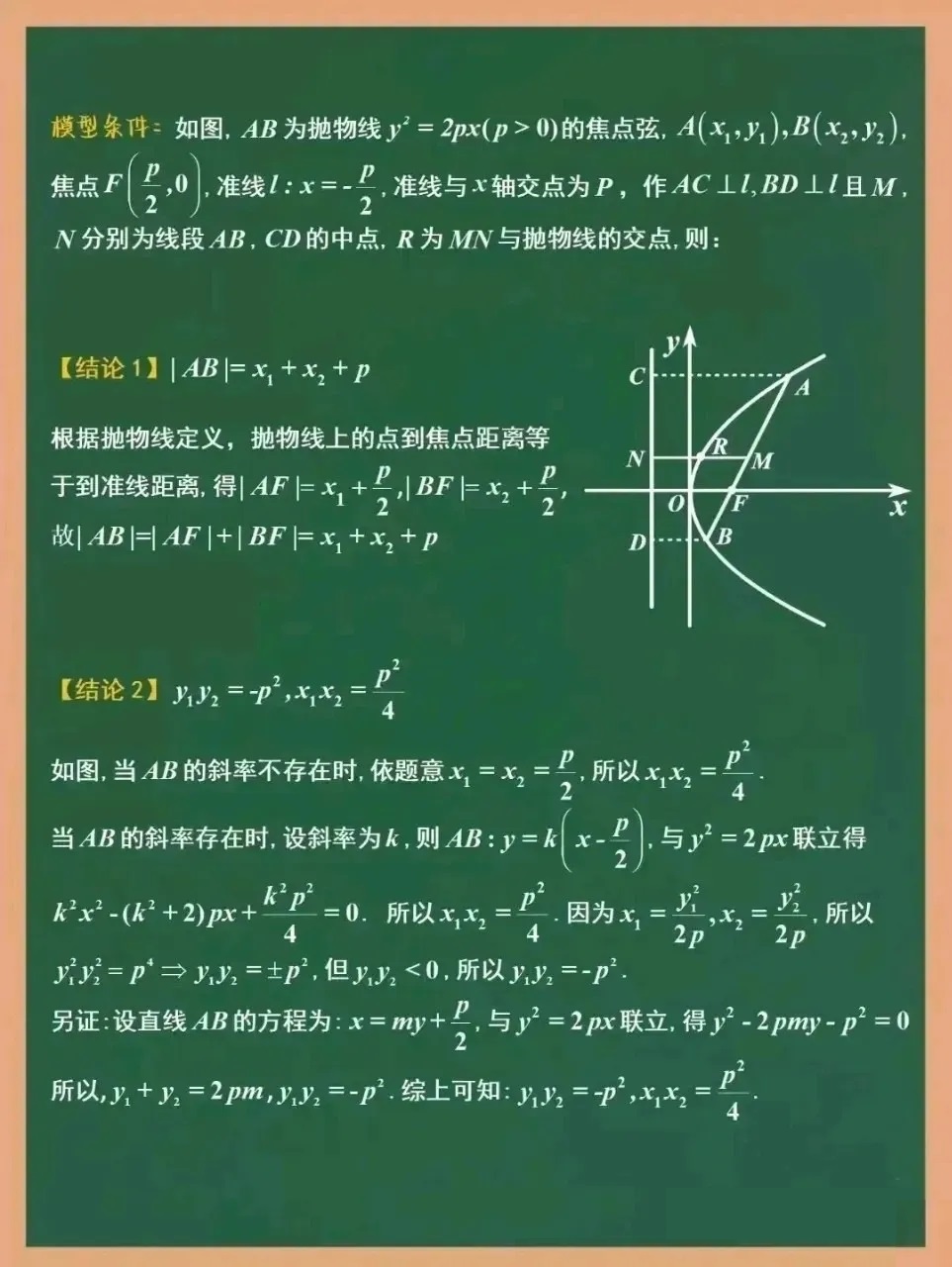 首页 学习宝库 抛物线焦点弦10个重要结论