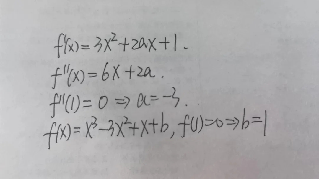 方法3(三次函数对称中心的横坐标是二阶导数的零点):