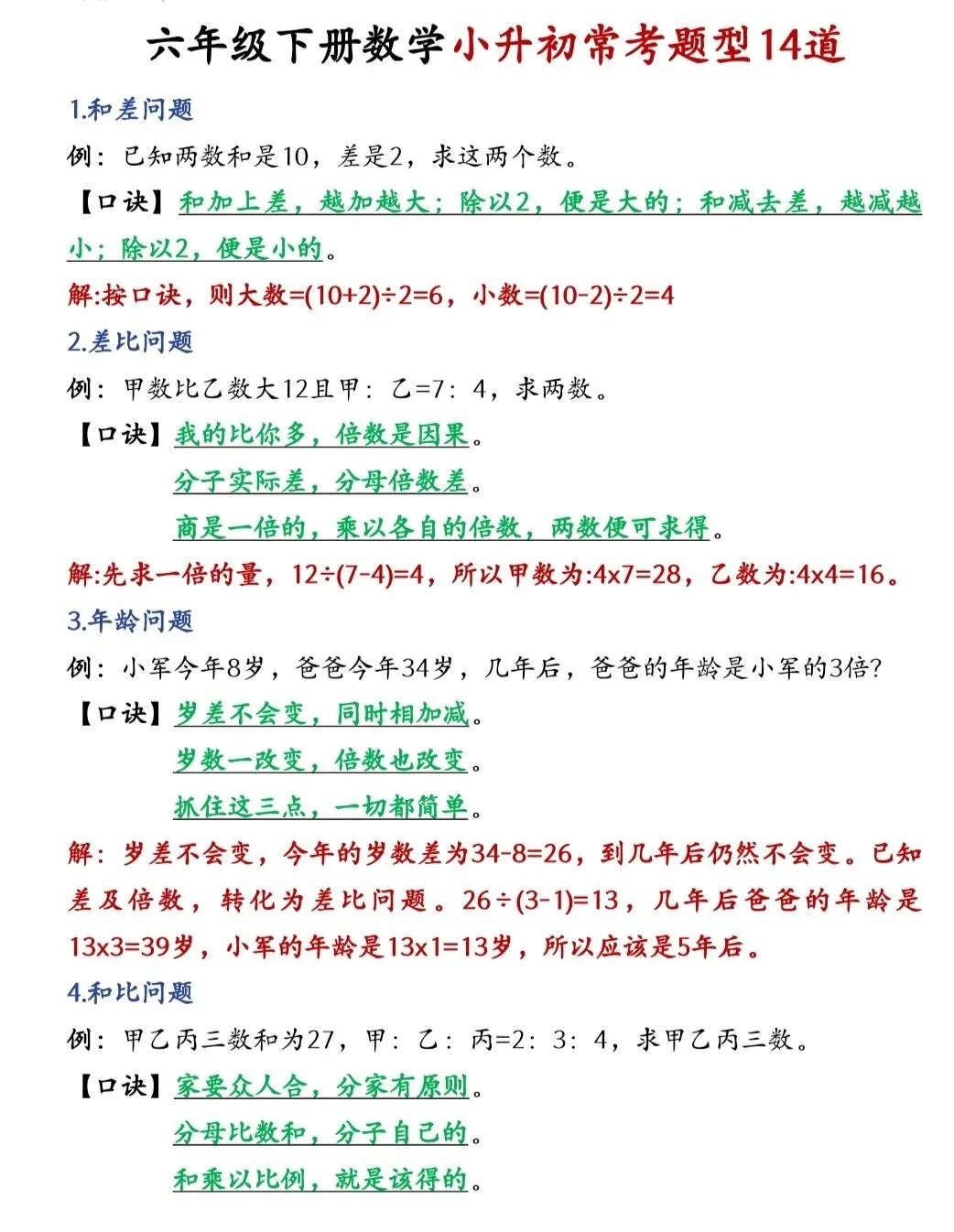 六下数学小升初常考题型14道