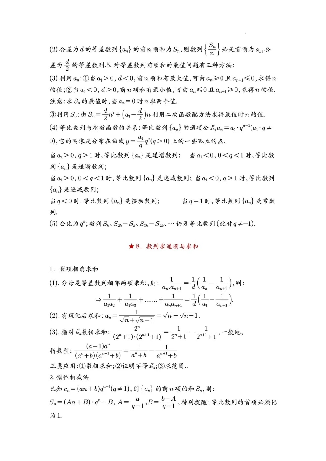 2024届高考数学必记二级结论清单