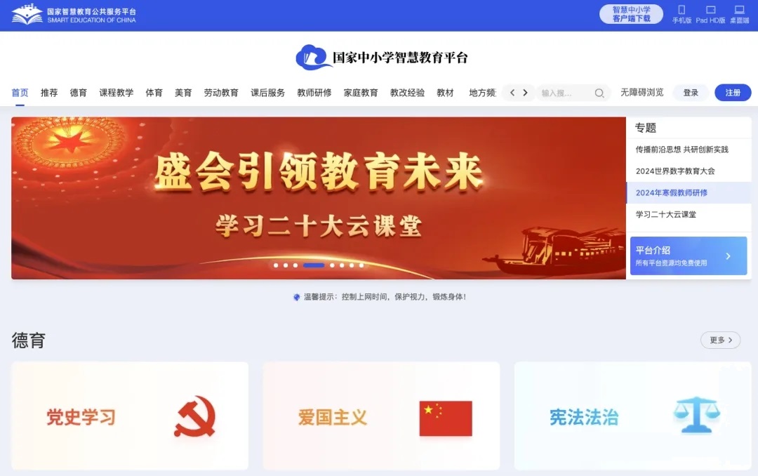 - 课程教学:提供国家优质课程资源,涵盖小学、初中和高中各个年级。你可以在这里找到丰富的课程内容,帮助学生更好地学习。