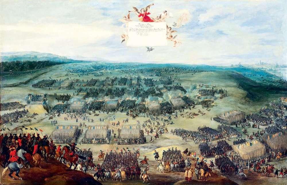 画中描绘了天主教在三十年战争中的一场著名胜利,击败了反叛的新教异端。斯奈尔斯煞费苦心,在画中记录了各种阵型、布局及部队移动,以庆祝这场胜利。观者很容易就能看出不同的部队、各自的武器,以及在战斗序列中的位置。但对于小兵的体验和感受,斯奈尔斯认为其重要性远远不如部队。与让–雅克·瓦尔特一样,斯奈尔斯所用的视角也仿佛我们是奥林匹斯山上的众神,让我们觉得战争就是个巨大的棋局。