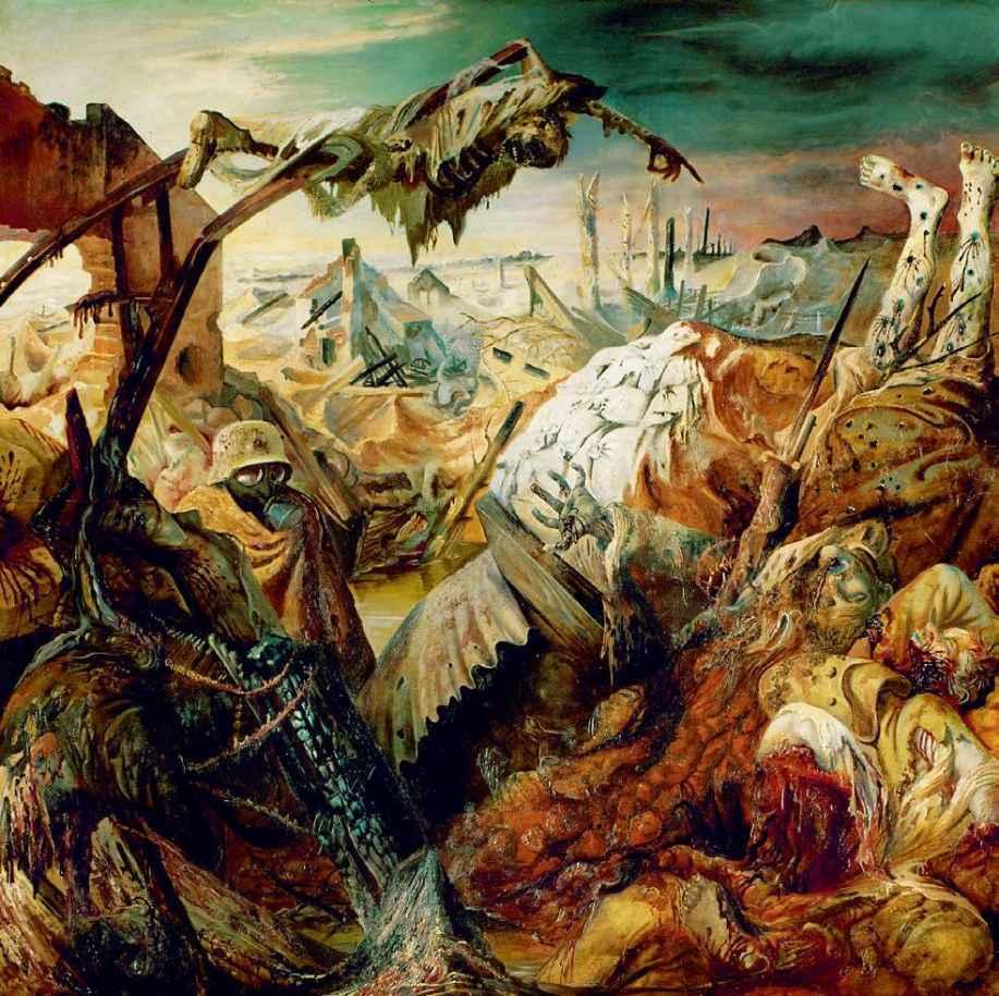 像迪克斯和李这样的艺术家协助颠覆了看待战争的传统视角。更早的许多战争,残酷程度当然不亚于20世纪的战争。但在那之前,这些残酷的经历都处于一个更广泛的背景之中,被赋予了正面意义。战争可能犹如地狱,同时也是通往天堂的门户。白山战役中的天主教士兵可以安慰自己:“确实,我感到痛苦。但教皇和皇帝曾说,我们是为了正义而战,所以我的痛苦是有意义的。”奥托·迪克斯的逻辑则相反。他认为个人体验才是一切意义的源头,因此他的想法会是:“我感到痛苦,而这是坏事,所以整场战争也就是坏事。如果德意志皇帝和神职人员支持这场战争,他们肯定犯了错。”