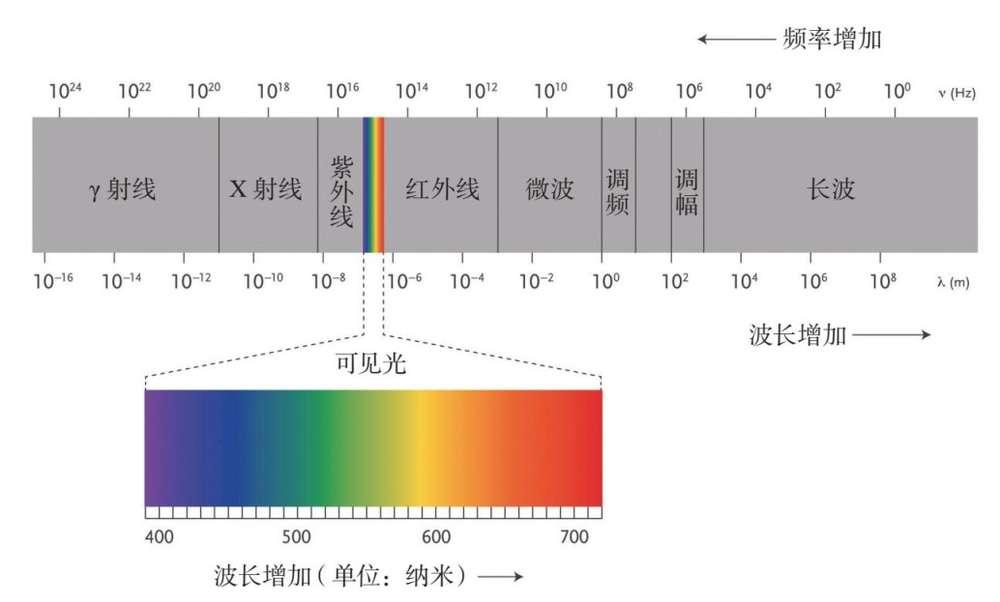 图46 在整个电磁波频谱中,人类只能看到其中很小的一段。整体实际的频谱,大约是可见光这一段的10万亿倍。心理的频谱,会不会也是如此庞大?
