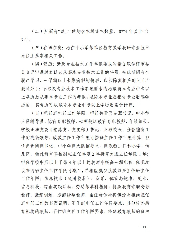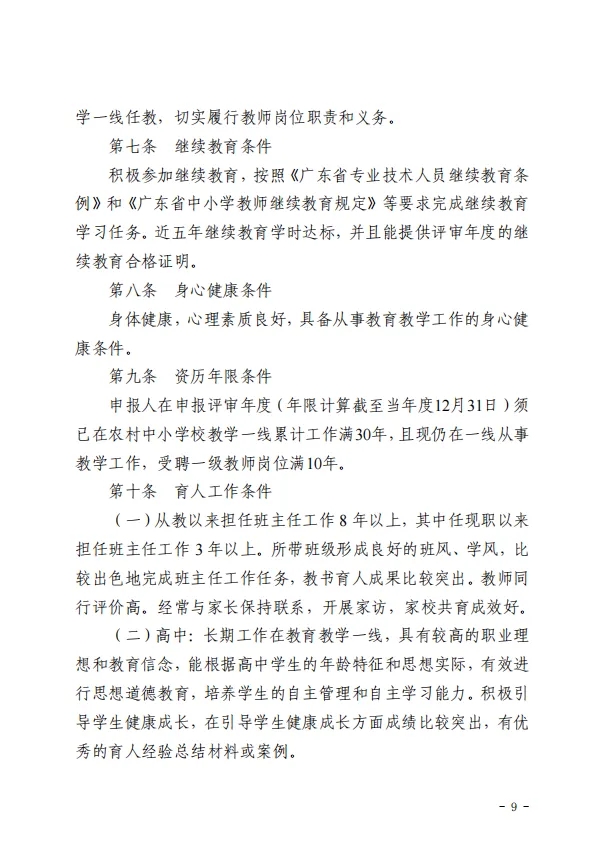 值得关注的是,根据乡村学校教师职业特点,惠州把教好书、育好人作为评审的核心内容。评审突出乡村学校教师师德表现,注重教学工作实际。其中“资历年限条件”提到,申报人在申报评审年度(年限计算截至当年度12月31日)须已在农村中小学校教学一线累计工作满30年,且现仍在一线从事教学工作,受聘一级教师岗位满10年。评价标准对农村学校教师的荣誉、课题、论文不作任何硬性要求,符合条件即可申报。