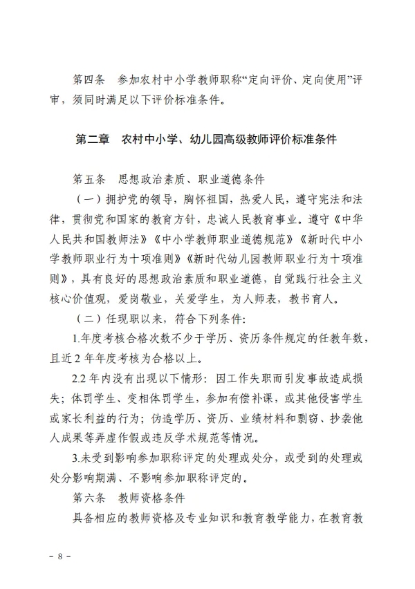 根据新政,农村中小学教师职称“定向评价、定向使用”的高级专业技术岗位实行总量控制、比例单列,每年由教育行政部门会同同级人社部门核定岗位总量,不占各县(区)专业技术高级结构比例。各县(区)每年使用的农村中小学教师职称“定向评价、定向使用”岗位应不低于符合条件人数的30%。