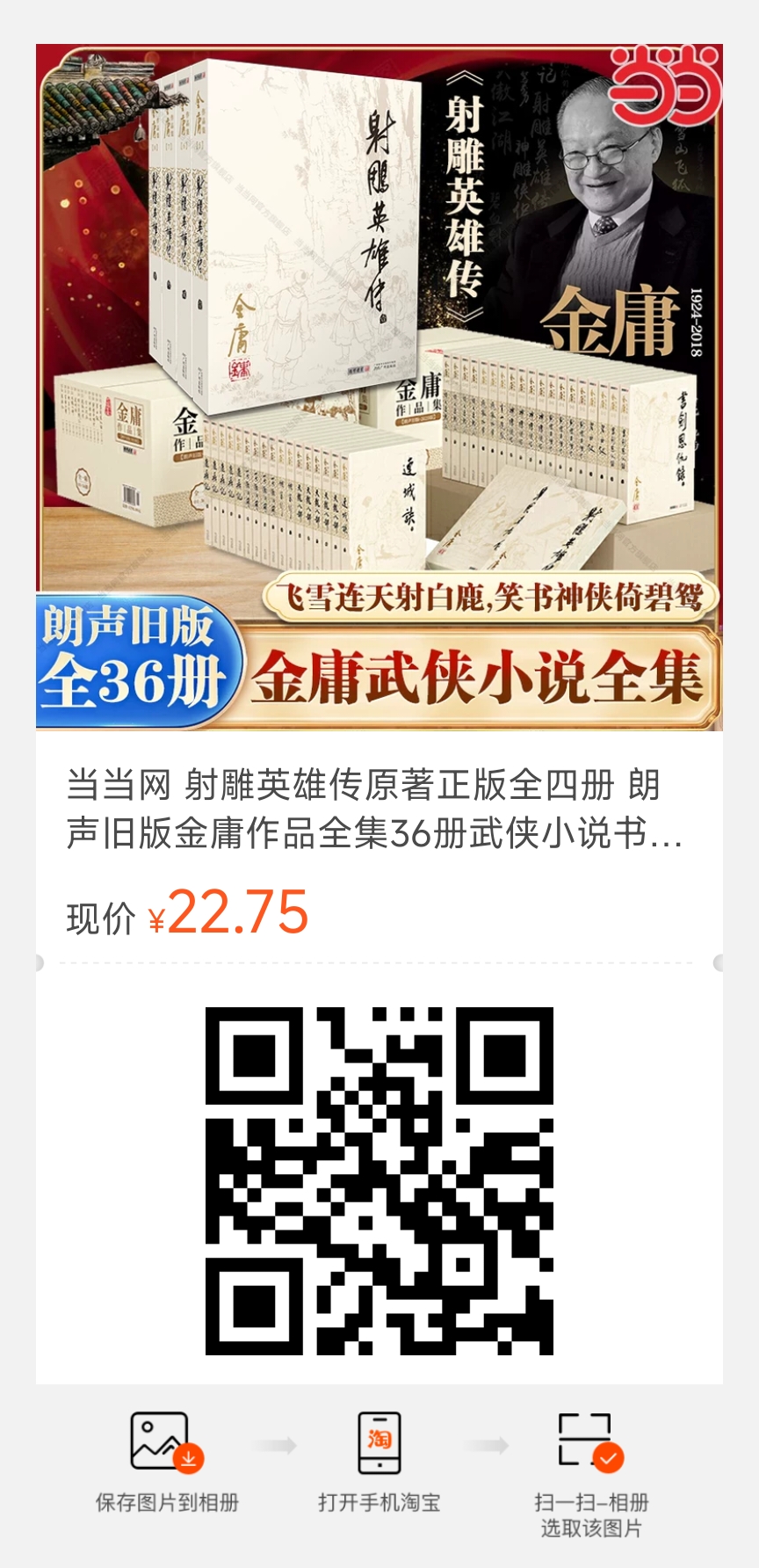 | 《射雕英雄传》全集在线阅读 《射雕英雄传》,自幼家破人亡的郭靖,随母流落蒙古大漠,这傻头傻脑但有情有义的小伙子倒也逝有福气,他不但习得了江南六怪的绝艺、全真教马钰的内功、洪七公的隆龙十八掌、双手互博之术、九阴真经等盖世武功,还让古灵精怪的小美女黄蓉这辈子跟定了他。这部原名『大漠英雄传』的小说是金庸小说中最广为普罗大众接受、传颂的一部,其中出了许多有名又奇特的人物,东邪西毒南帝北丐中神通,还有武功灵光、脑袋不灵光的老顽童周伯通,他们有特立独行的性格、作为和人生观,让人叹为观止。 | |