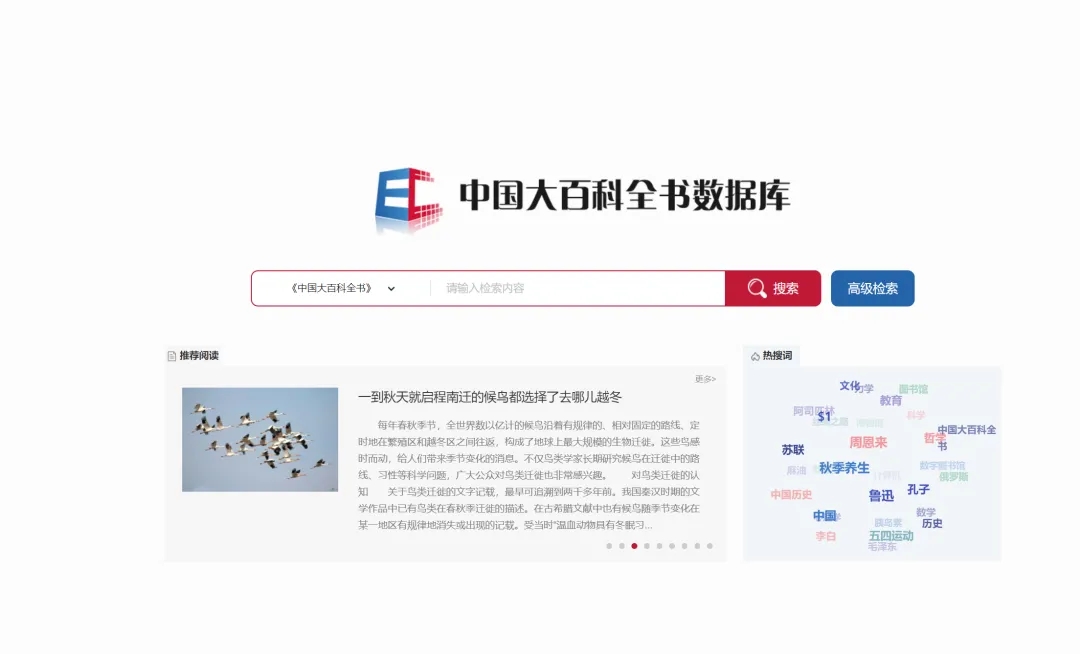 《中国大百科全书》是我国第一部大型综合性现代百科全书,是国家“九五”、“十五”重点出版工程。该书系统地向世界介绍中国社会、政治、经济、文化的发展成果,中国大百科全书数据库则是一个可以在线搜索阅读《中国大百科全书》的网站。