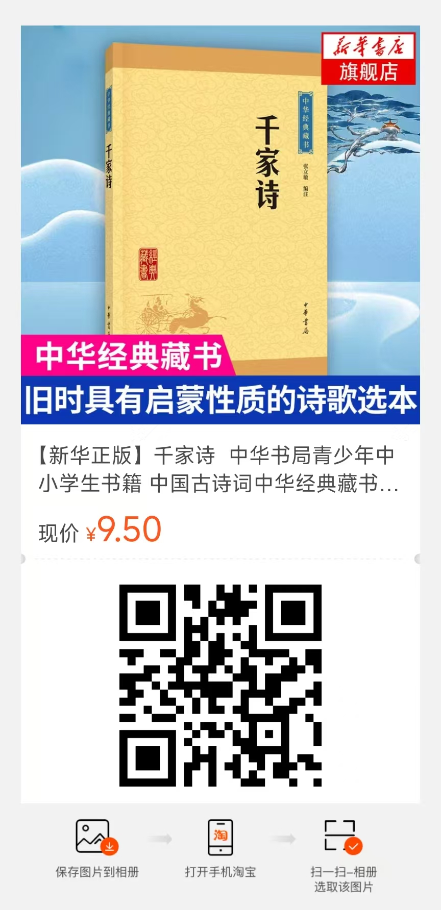 《国学启蒙书系列:千家诗》主要内容:现代人常常提到的蒙学读物是“三百千千”,就是《三字经》、《百家姓》、《千字文》、《千家诗》。其中,《千家诗》是明清两朝流传极广、影响深远的儿童普及读物。它从一开始就受到广大读者的青睐,而“千家诗”这个书名更是广被采用,例如清代有《国朝干家诗》、《续干家诗》,民国间有《醒世千家诗》,当代又出现《官厅湖畔千家诗》、《岭南千家诗》、《当代江苏千家诗》、《五朝千家诗》、《少儿现代干家诗》、《中国现代千家诗》、《中日友好千家诗》、《外国千家诗》等,不一而足,蔚为大观,足见“千家诗”的影响。《国学启蒙书系列:千家诗》为“国学启蒙书系列”中的一册。在《国学启蒙书系列:千家诗》一书中,编者韩震等人采用活泼插图的表现方式,编选相关的精彩故事,融知识性与趣味性于一体,让青少年在诵读中轻松快乐地亲近《千家诗》,更直观、真切地感受《千家诗》的魅力,在阅读中积淀文化底蕴,培养良好道德品质,从而受益一生。