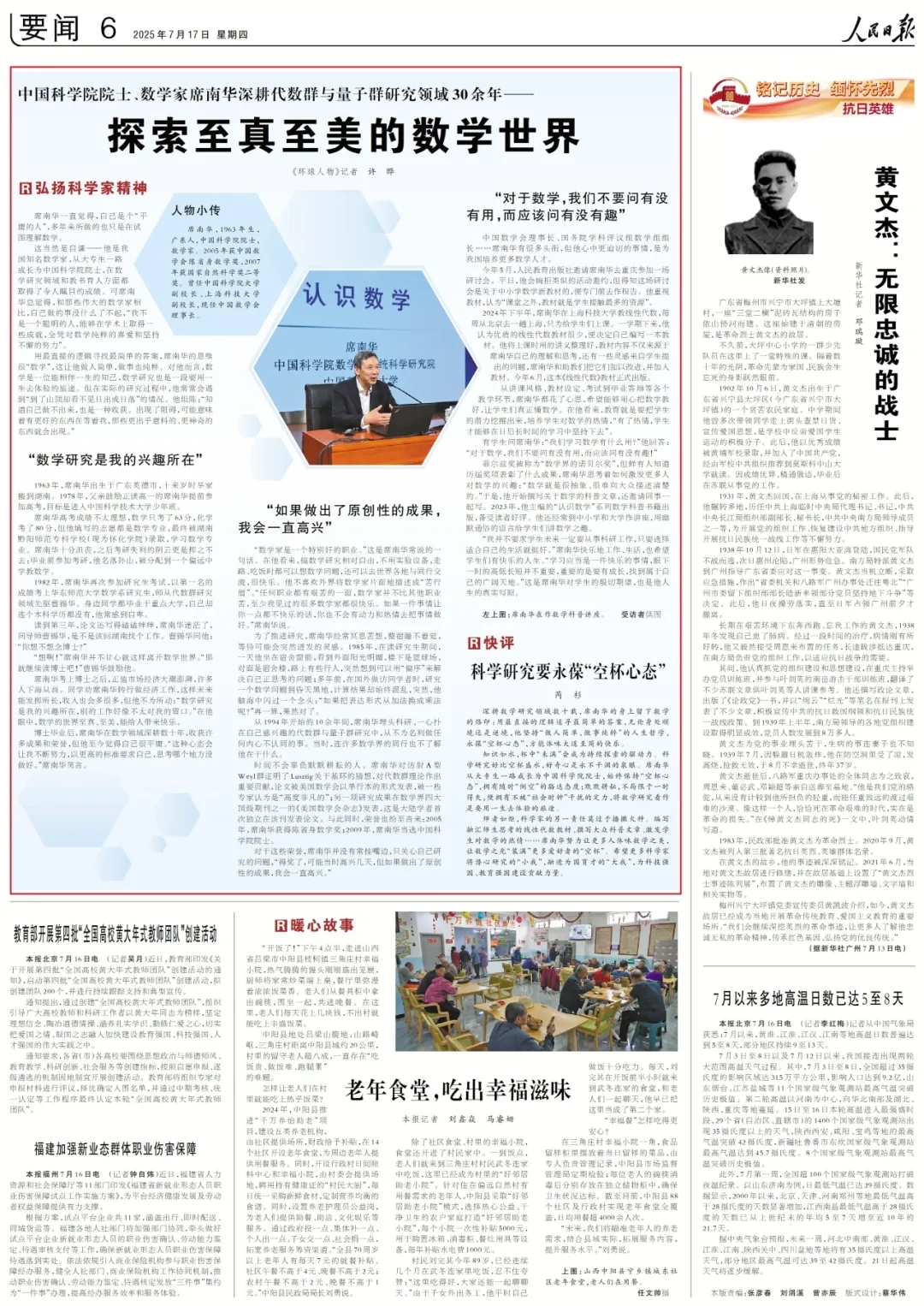 深耕数学研究领域数十载,席南华的身上留下数学的烙印:用最直接的逻辑追寻最简单的答案,无论身处顺境还是逆境,他坚持“做人简单,做事纯粹”的人生哲学,永葆“空杯心态”,方能体味大道至简的快乐。